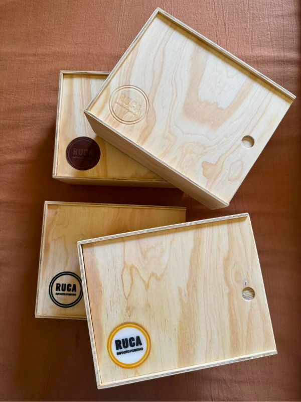 La caja de madera puede incluir un detalle decorativo en cuero con logo (color, negro o transparente), sujeto a disponibilidad.